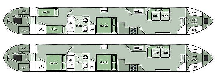 Heron är en utmärkt kanalbåt för två par som vill resa bekvämt tillsammans. Båten har två rymliga och trivsamma hytter samt möjlighet till en extra sovplats i salongen. Ett badrum med dusch och toalett finns ombord, liksom ett fullt utrustat kök som gör det enkelt att laga mat under resan.