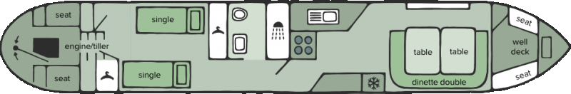 Weaver och Wren, som har samma layout, är ett utmärkt val för par eller små familjer som vill uppleva en avkopplande kanalbåtssemester i England. Med plats för upp till 4 personer kombinerar båten kompakt design med hög komfort, vilket gör den idealisk för både romantiska resor och mindre sällskap som vill njuta av lugnet längs de engelska kanalerna.